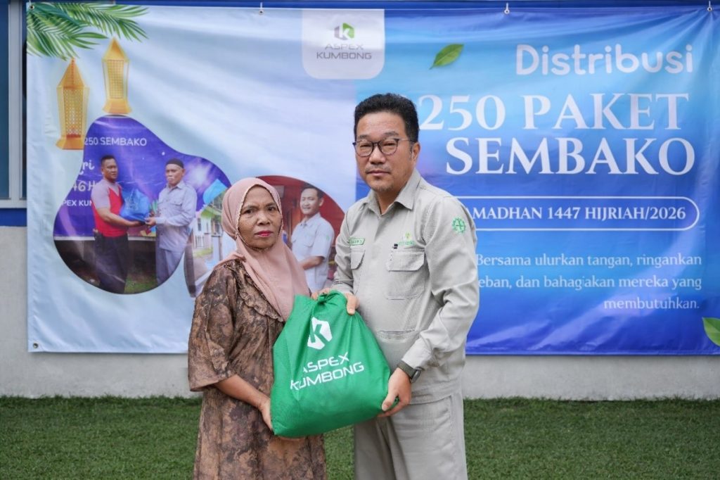 Photo: General Manager Geuntai Kim and a beneficiary of PT Aspex Kumbong’s staple food donation at the handover ceremony. This annual initiative allows the company to be present for local communities and share joy in time for Eid