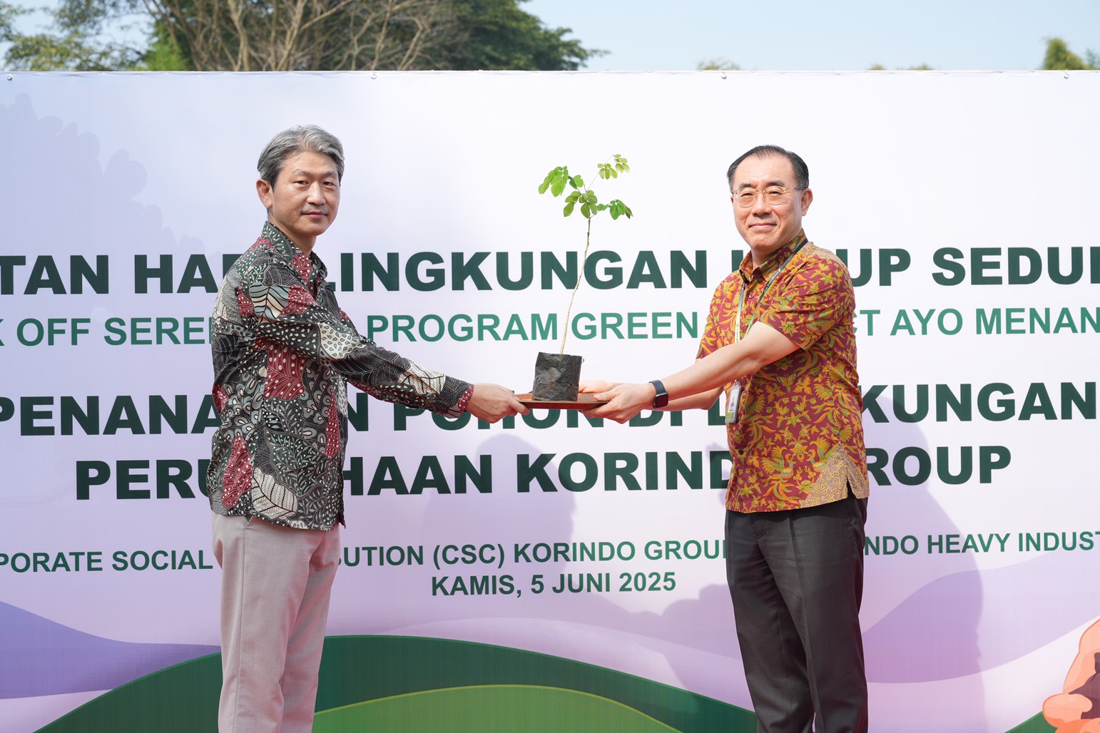 BALARAJA – In time for World Environment Day, Korindo Group reaffirmed its commitment to environmental preservation through the “Green Project: Ayo Menanam” program. This year’s host is subsidiary Korindo Heavy Industry, who planted 2,000 perennial seedlings across six designated locations within its operational area.