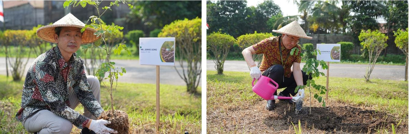 Photo: Korindo Heavy Industry Director Junho Song (left) with Korindo Foundation General Secretary Lee Sunghoon doing seedling planting for World Environment Day